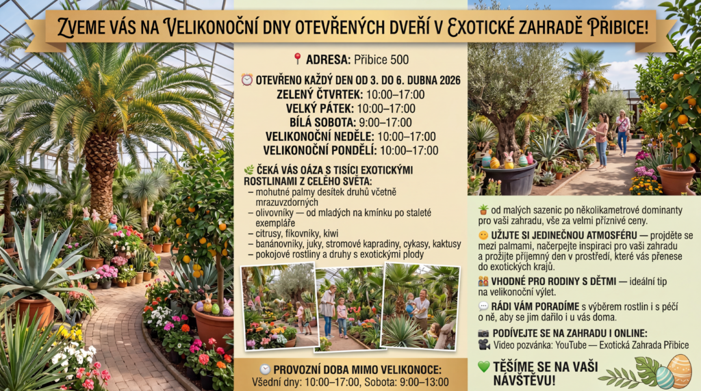 🌞 Užijte si jedinečnou atmosféru – projděte se mezi palmami, načerpejte inspiraci pro svou zahradu a stravte příjemný den v prostředí, které vás přenese do exotiky.